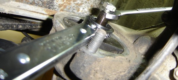 of the oil cool exhaust pipe. To the left of the pipe, the lever with