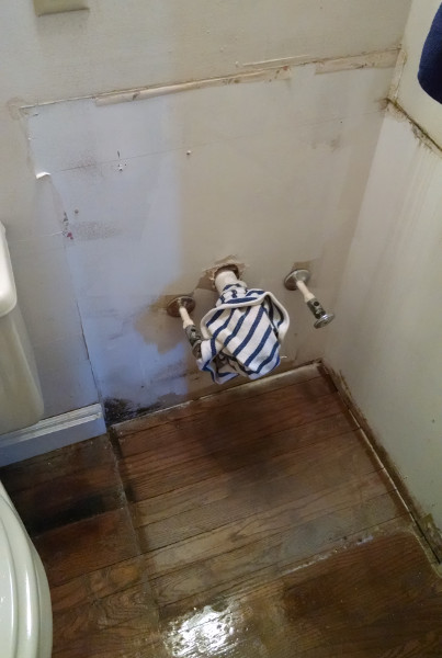 All finished! We have a nice, new, shiny sink in the half-bath.